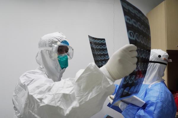 我记得有三个陪护家属担心自己感染,来找我拍CT,一拍全中招了。但因为不严重,他们要继续陪护,我们也只能给他们发防护服,让他们戴好口罩,注意手部卫生。