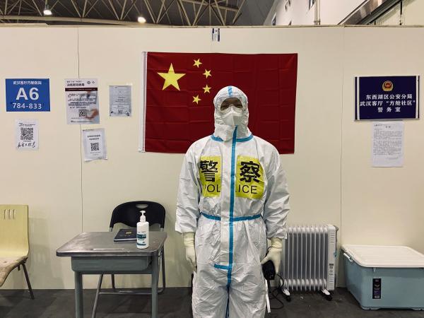 我是武汉市公安局东西湖区分局民警张旭东,现在东西湖方舱医院B舱执勤。