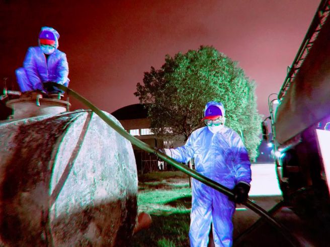 晚上7点,两支党员突击队先后抵达卸油点,将10000升柴油紧急驰援到黄陂一中体育馆方舱医院。