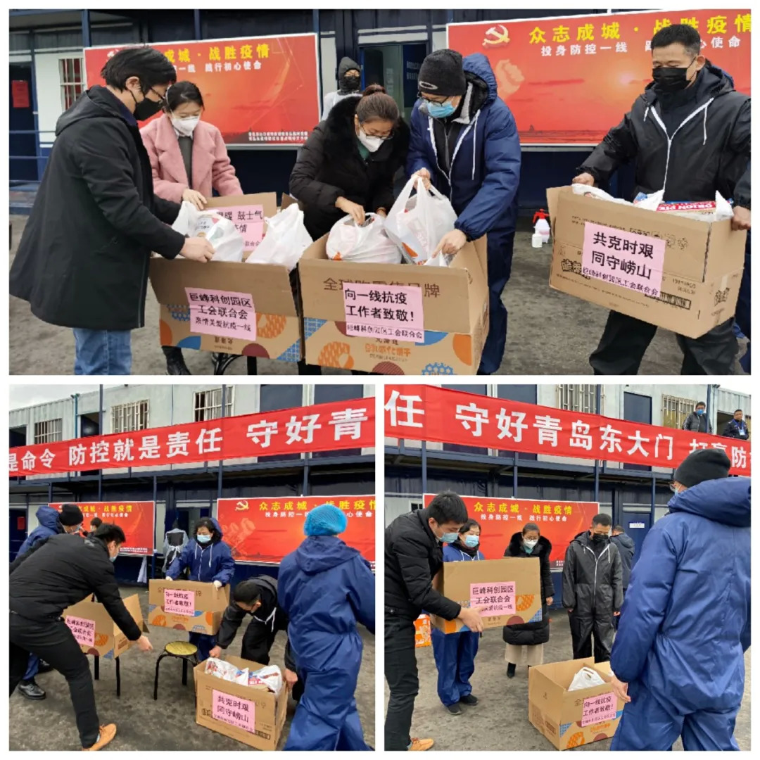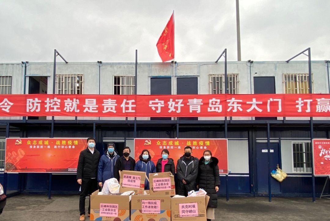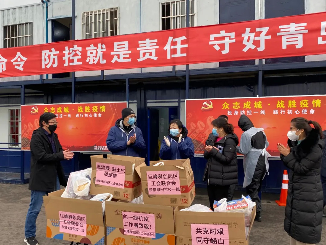 在崂山区青银高速青岛东出口,有一支坚守奋战的疫情防控突击队,这是由崂山区党员组成的“硬核力量”,他们不畏艰险,始终战斗在疫情防控的第一线。2月25日,巨峰科创园区工会联合会主席沈芳带队慰问这些坚守疫情防控一线的最美逆行者。参加慰问的还有巨峰科创园区工会联合会委员、巨峰科创园区联合基层工会主席辛海军,巨峰科创园区工会联合会委员、杰生电气工会主席王新荣。