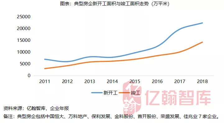 2016年开始,新开工与销售面积之前的变化趋势保持不变,均在不断走高,而竣工面积却出现下滑,即新开工面积增速与竣工面积差距不断扩大。