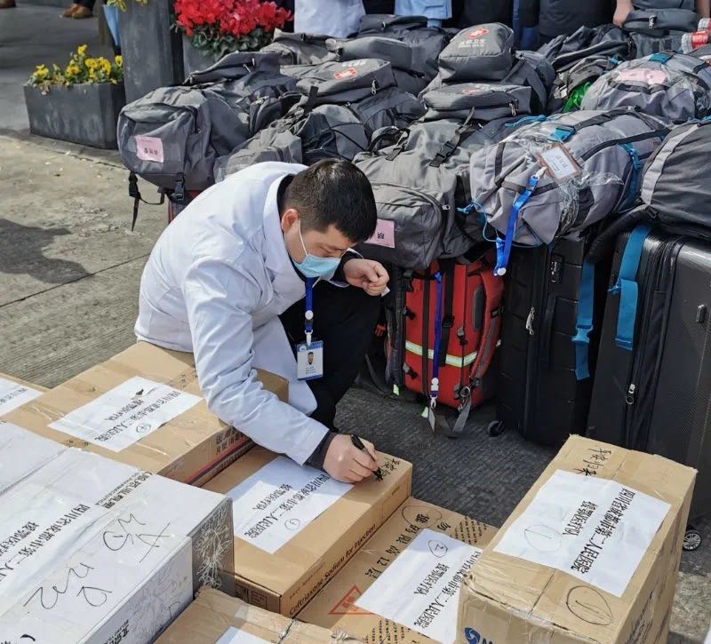 援鄂医疗队到达武汉期间,总务科随时与他们保持联系,询问队员所缺物资,根据队员所需,第一时间积极筹备所需物资。同时联系航空公司、快递公司准备邮寄物资。因受疫情影响,各快递公司发往湖北的快递业务纷纷暂停,队员急缺的物资邮寄不出去,唐庆科长就发动大家建言献策,多方联系后,得知中国邮政专门开设抗疫邮寄服务,及时与邮政成都分公司联系,确保补充物资第一时间寄到武汉援鄂队员手中。