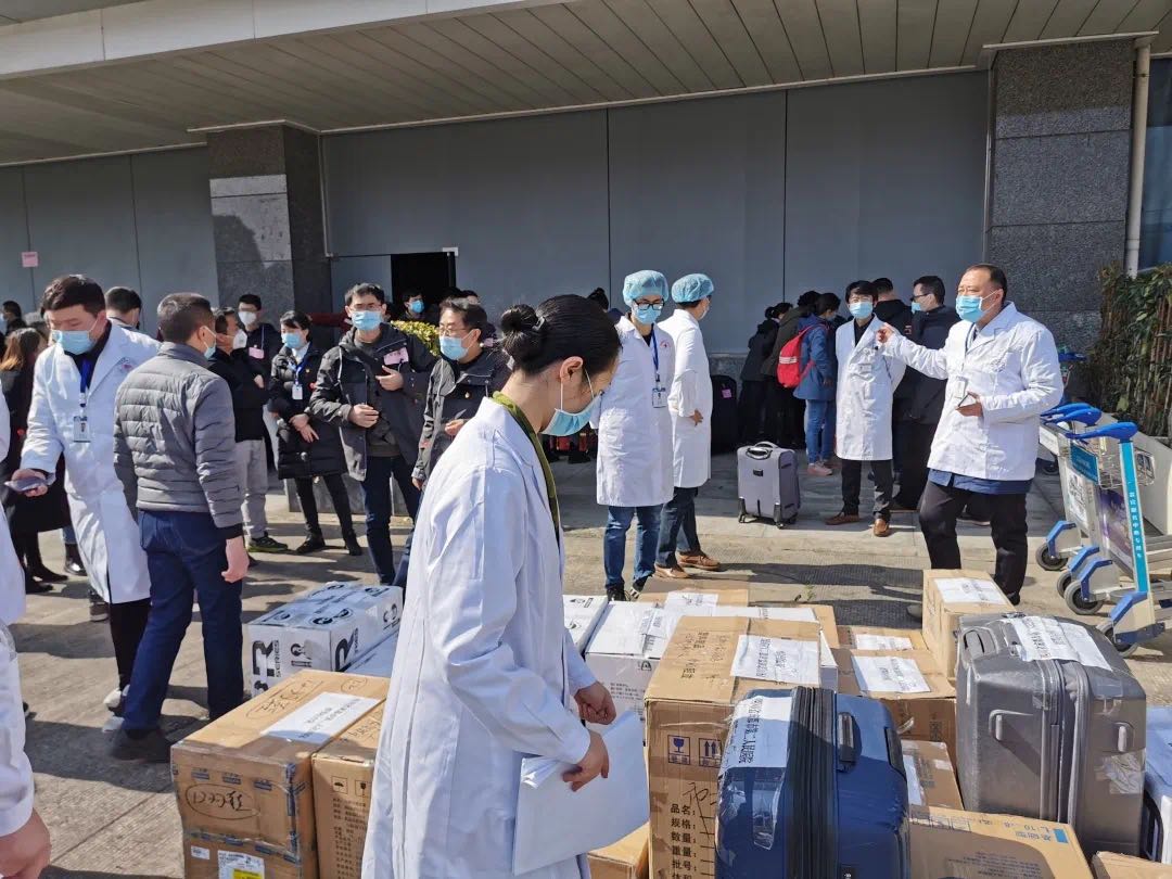 2月9日上午,医院第二批援鄂医疗队即将出征武汉,总务科、保卫科人员快速为队员们打包物资,有细心的科室人员还专门在物资箱上写下“加油,平安归来!”的祝福。考虑到物资数量较多,在送医疗队去机场的路上,科室专门派人全程运送、搬运物资,与机场顺利交接后才从机场回来,一直忙到下午3点多,才吃上午饭。