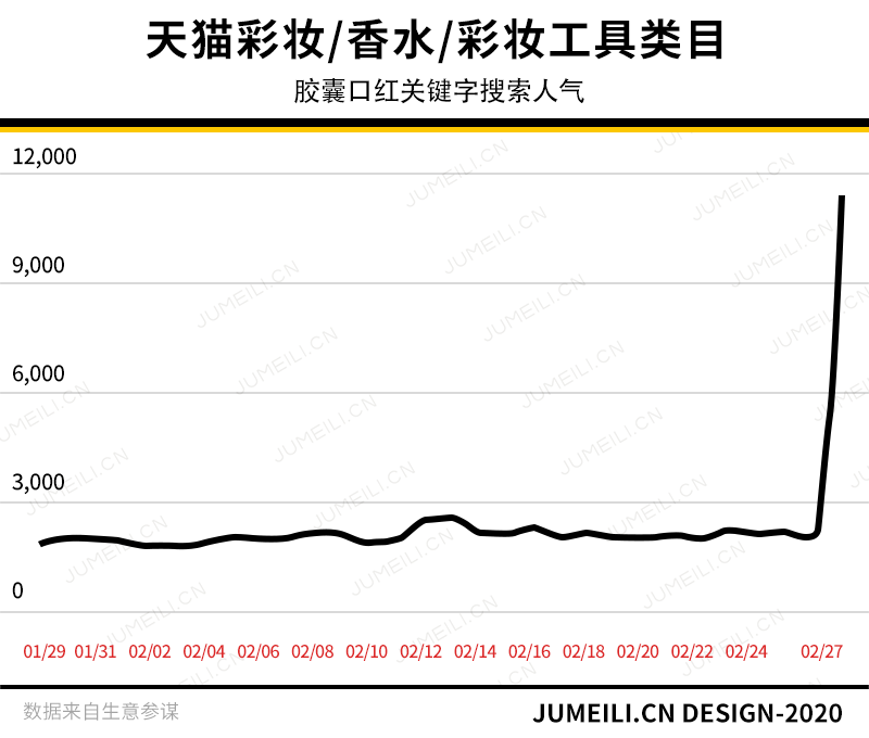 在生意参谋数据中可以看到,小胶囊口红的搜索热度直线上升。