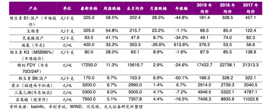 此外,随着春耕来临,饲料需求上升,推动多个维生素品种价格大涨。据从事农牧资讯的博亚和讯监测,维生素B1价格从年初的157.5元/千克升至上周的325元/千克,涨幅超过100%。上周,维生素K3又表现出挑,涨幅超过20%。