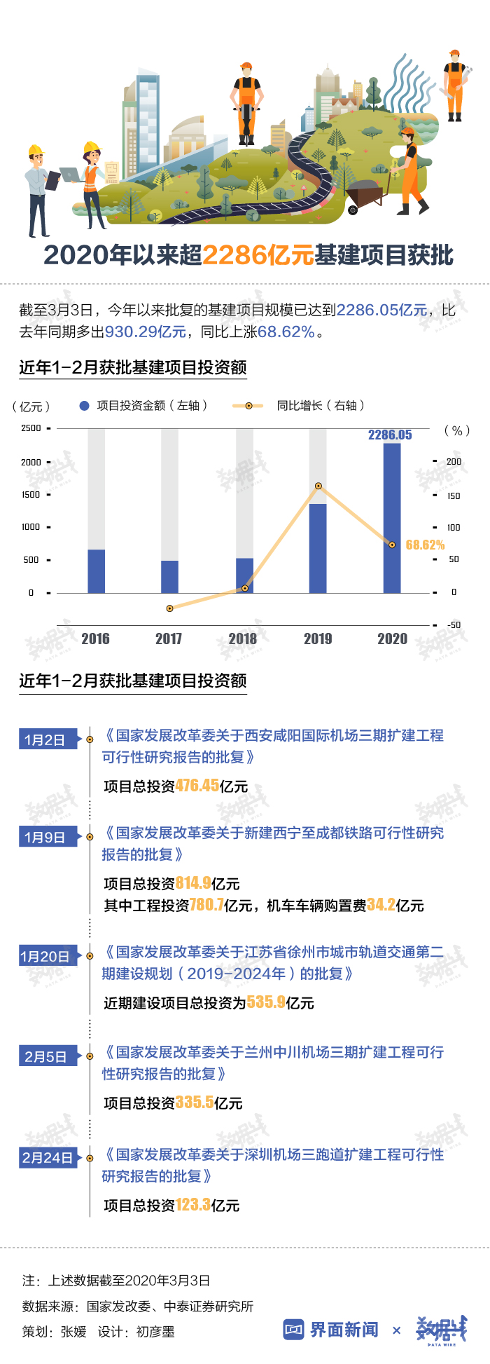 数据 | 今年以来获批基建项目投资额同比增长近7成,总额近2.3千亿元