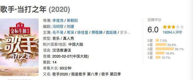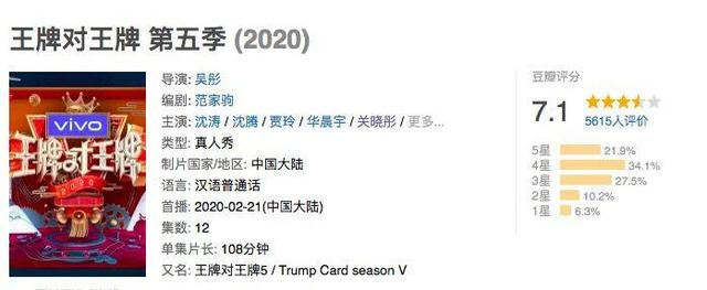 只是当最初的欢欣鼓舞褪去,观众也逐渐开始以理性审视这两档节目甚至是当下的综艺市场,并无太多意外,收视热度、话题热搜领跑,口碑争议依然,仍然是此类老牌节目的三个常态。截至目前,《歌手·当打之年》豆瓣评分6分,1.9万人打分;《王牌对王牌5》的状况稍好一些,豆瓣评分7.1分。