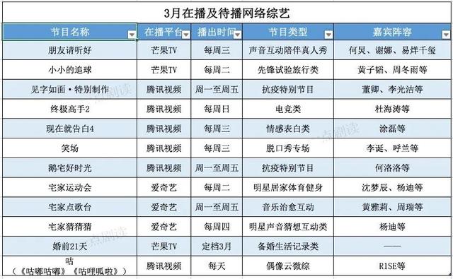 据一点剧读不完全统计,3月份在播的综艺或超25档,显然疫情影响下的综艺市场正在快速回归正轨。而经历了“燎原野火”,属于综艺市场全新的嫩芽和生机也正在出现。