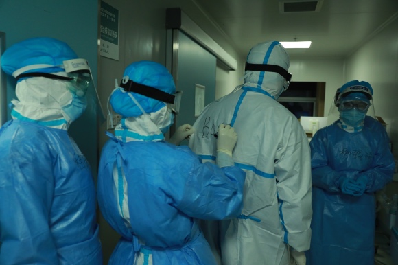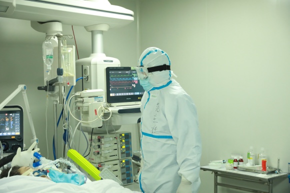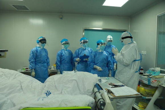 他通常会在上午9点进入隔离病区,中午出舱,下午参加会诊疗会议,处理管理上的工作。病人症状有变,他还要时刻待命入舱,索性在医院对面仍在营业的酒店开了一间房,在最短的时间里赶赴病房。