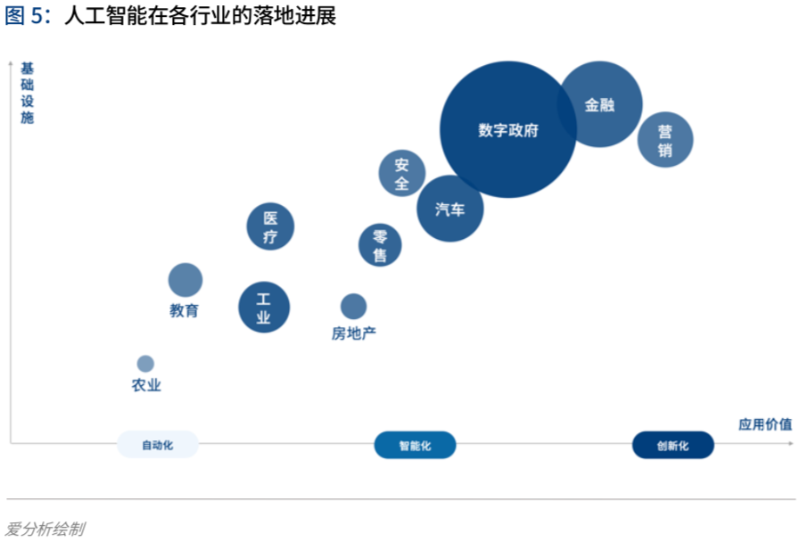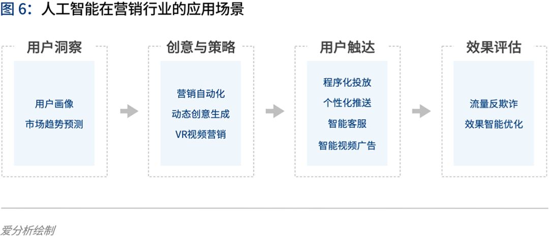 接下来,我们将以人工智能在在营销、金融、数字政府、安全、教育、工业等部分行业的应用实践为例,分析人工智能的实际落地进展。
