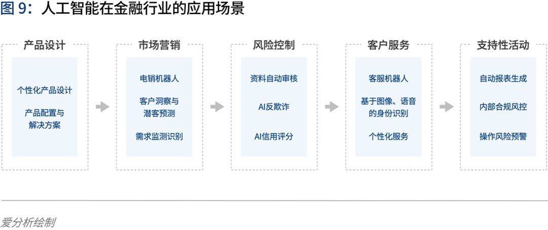 人工智能技术在金融行业的应用也越来越广泛,在产品设计、市场营销、风险控制、客户服务等环节已经实现了不同程度的渗透。