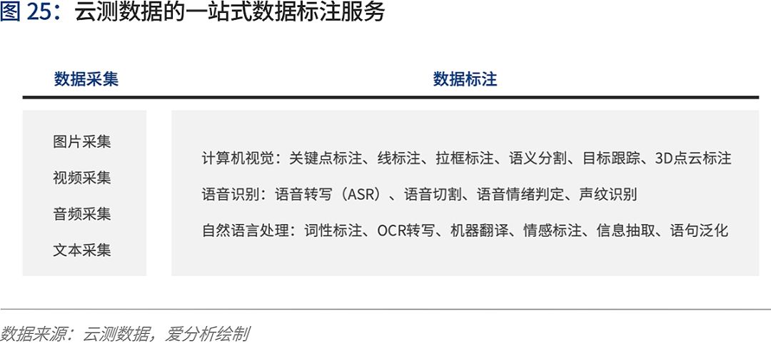 云测数据是Testin云测旗下AI数据标注服务品牌,通过自建数据场景实验室和数据标注基地,从数据采集、数据清洗,数据标注、标注平台私有化部署、到标注驻场服务的定制化一站式数据服务。