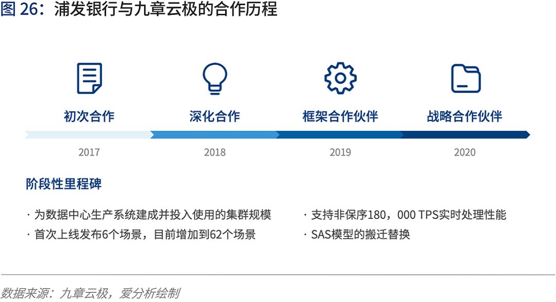 浦发银行从2017年开始和九章云极初次合作,并不断扩大合作构建浦发银行AI大脑,2020年达成战略合作。九章云极采用高吞吐、低延迟的数据流引擎DataCanvas搭建数据科学全生命周期建模平台,为营销和风控系统提供实时的流式数据和批量数据处理服务,满足电子银行客户足迹分析、客服大数据分析、风险实时类预警、资金变动营销等业务场景需求。
