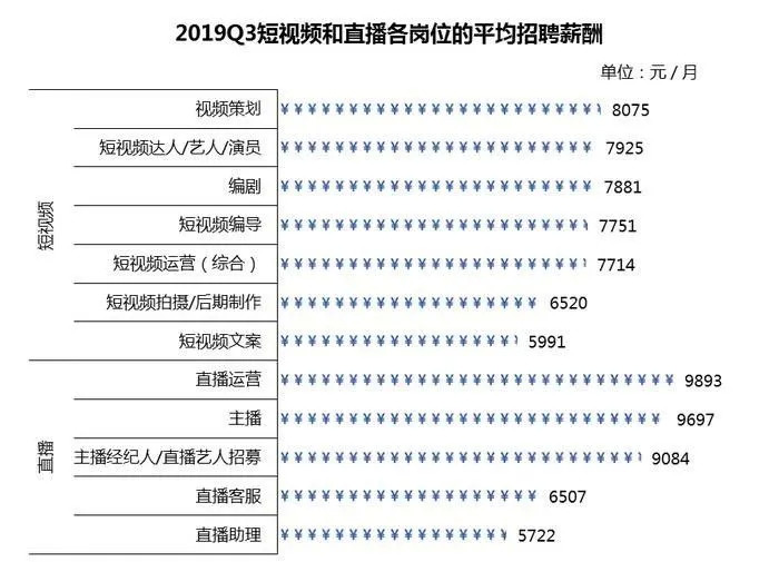 《2019年短视频/直播行业人才发展报告》显示,2019年三季度,直播的平均薪酬为9423元/月,但这一薪酬数据已见顶。