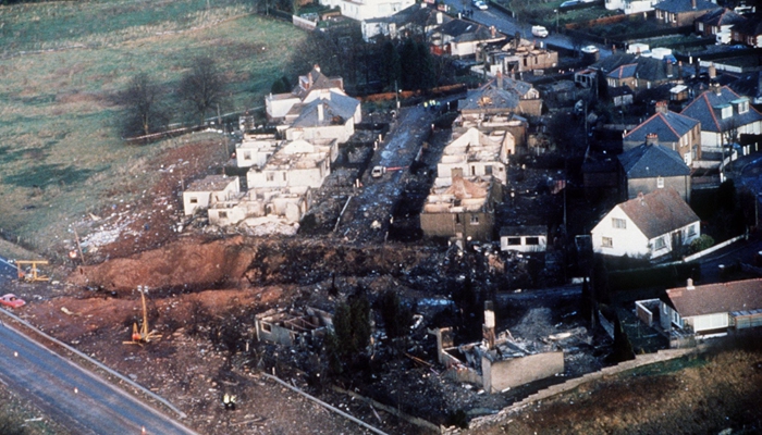 1988年12月21日,泛美航空公司的PA103航班正从伦敦飞往纽约,在经过苏格兰洛克比镇上空时突然爆炸,飞机残骸砸中小镇。机上259人无一幸免,其中大部分是美国人。事故还造成了地面上11名居民丧生。