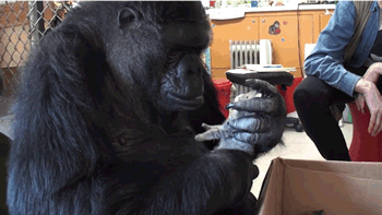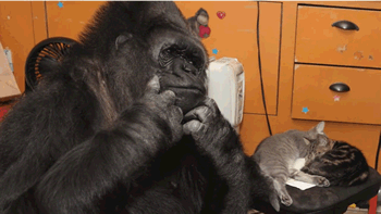 据训练员Francine Patterson说,Koko已经掌握1000多种“大猩猩手语”,而且更牛掰的是,在Koko小的时候它就接触到了英语口语,它能明白将近2000个英语单词……