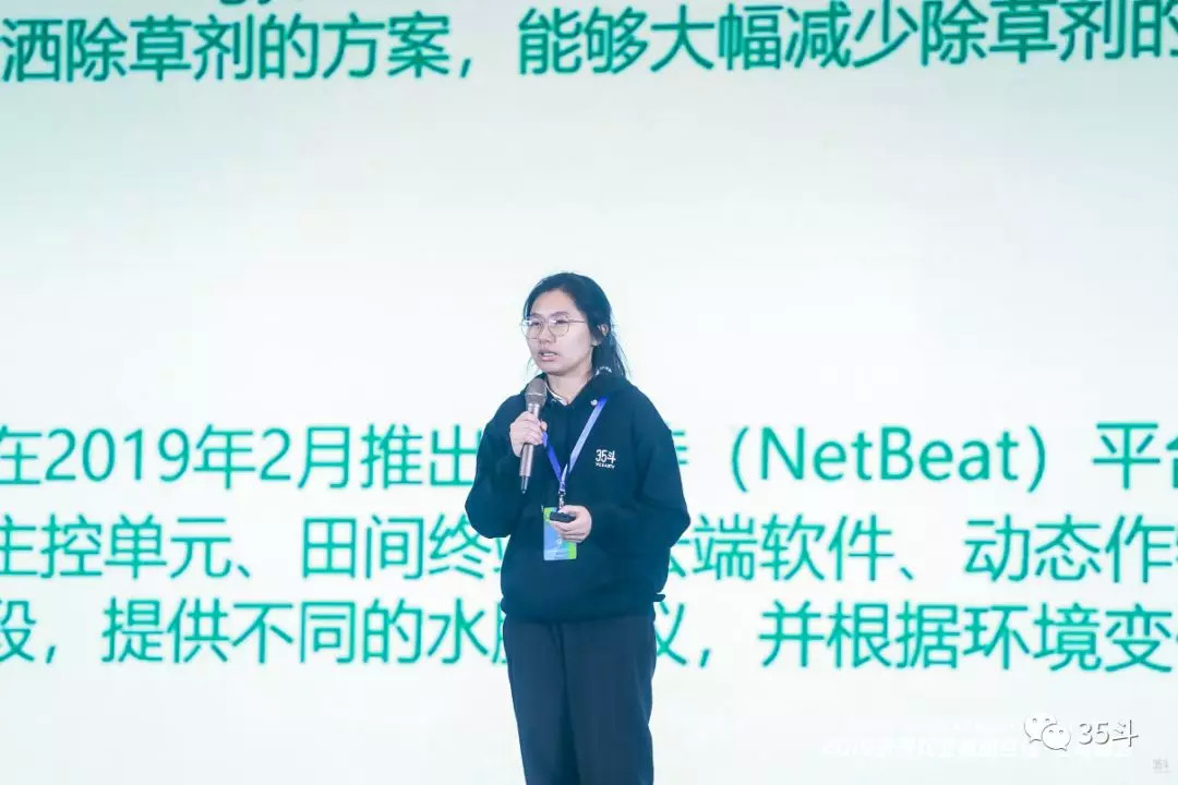 图为卿熙雯在35斗未来农业峰会上讲解产业