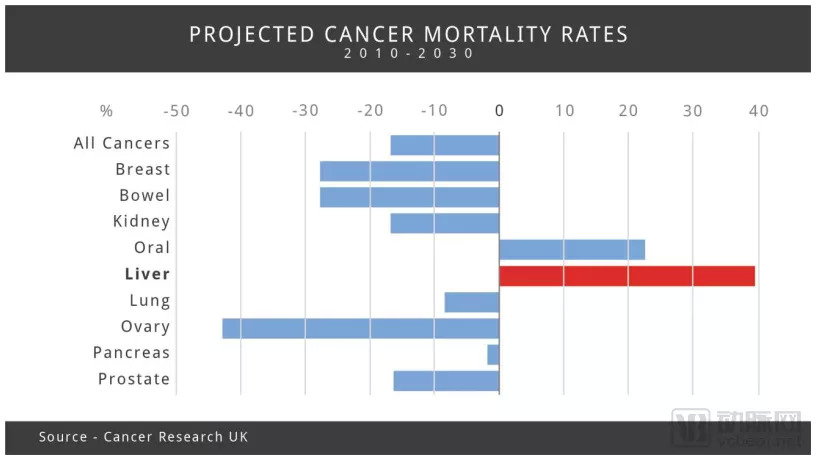 现在,肝癌是导致美国癌症死亡人数增长的最重要的原因。据美国癌症协会估计,截至2020年,约30,160人(其中20,020男性,10,140女性)将死于原发性肝癌和肝内胆管癌。在全球范围内,肝癌是2018年第六大最常被确诊的癌症和第四大癌症死亡的主因,每年约有841,000例新增病例和782,000例死亡病例。