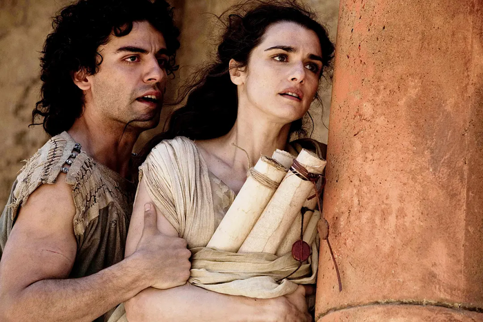 2. 2009年,奥斯卡·伊萨克搭档蕾切尔·薇姿和麦克思·明格拉主演影片《城市广场》,影片背景设置在4世纪的罗马帝国,伊萨克在片中饰演罗马多神教学者希帕提娅的学生奥利斯蒂斯,虽然是史诗片,导演也细腻刻画了两位男主角对希帕提娅的爱慕之情。影片是第62届戛纳电影节的非竞赛展映片。