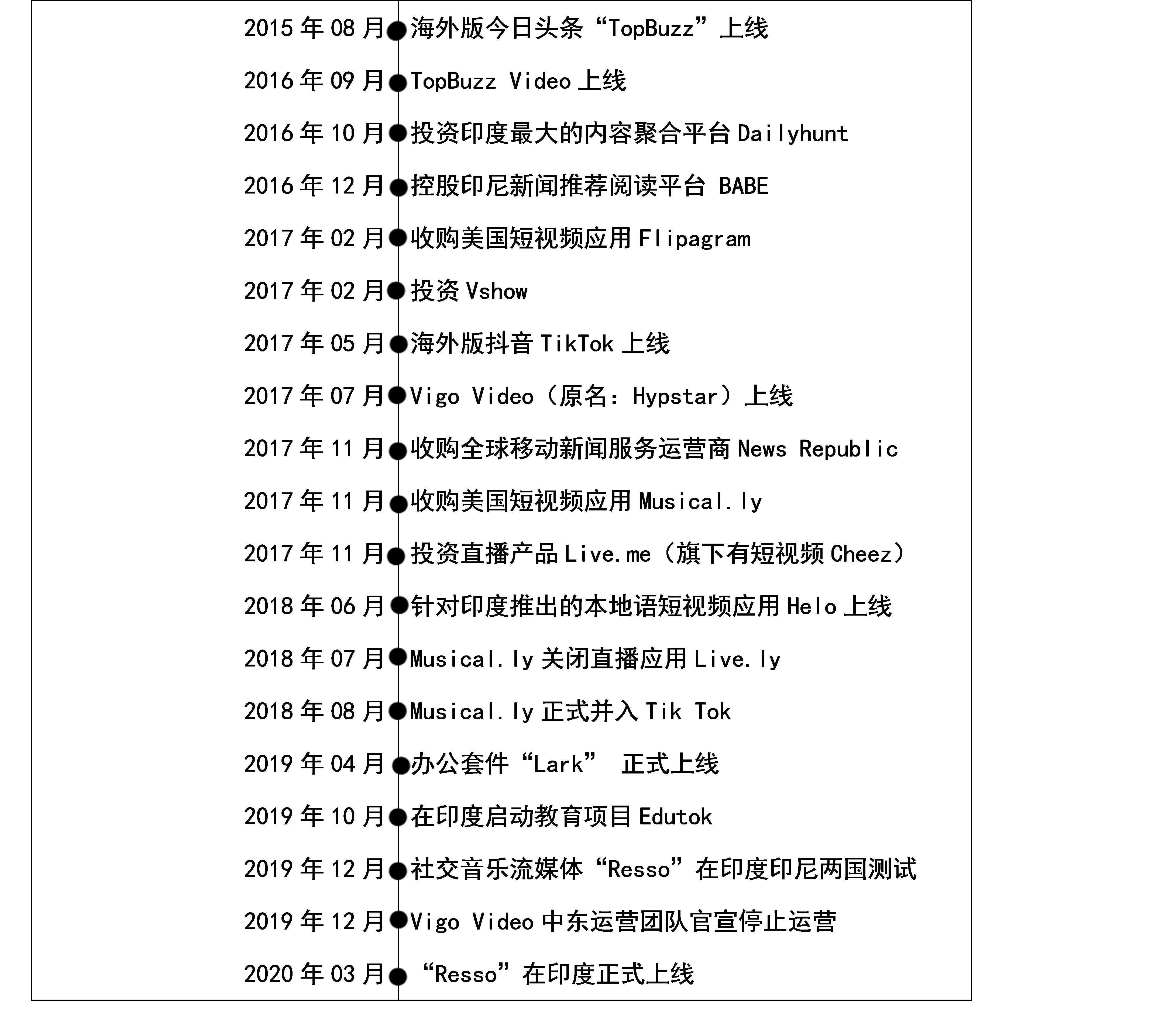 从时间线看,字节跳动的全球化布局正式开始于2015年,主要围绕两大动作:一、技术出海:以头条系大数据算法为基本逻辑,生产自有的国际化产品并本土化;二、资本出海:收购、投资市场上的同类产品。