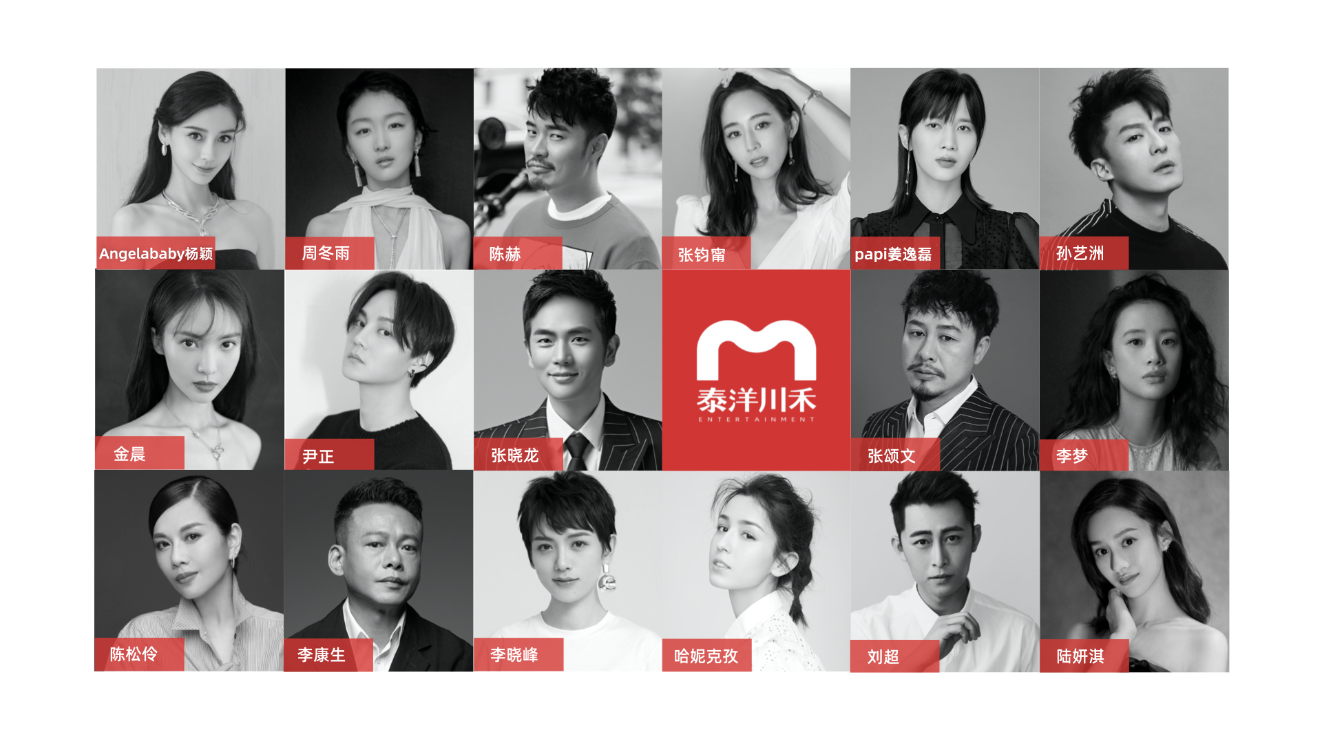 目前,泰洋川禾与Angelababy、周冬雨、陈赫、张钧甯等近50位艺人签约合作,这些艺人全网粉丝量超5亿,2019年累计参演近150部影视综艺作品。旗下MCN机构papitube与@papi酱、@Bigger研究所等160余位博主签约合作,全网粉丝量近4亿,全网累计播放量逾1000亿次,并多次获得微博、抖音MCN机构排名第一。