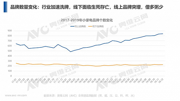 利好的市场,谁都想分一杯羹,小家电品牌,尤其是线上品牌迎来激增。根据奥维数据,截止2019年,线上小家电的品牌已经突破800个。