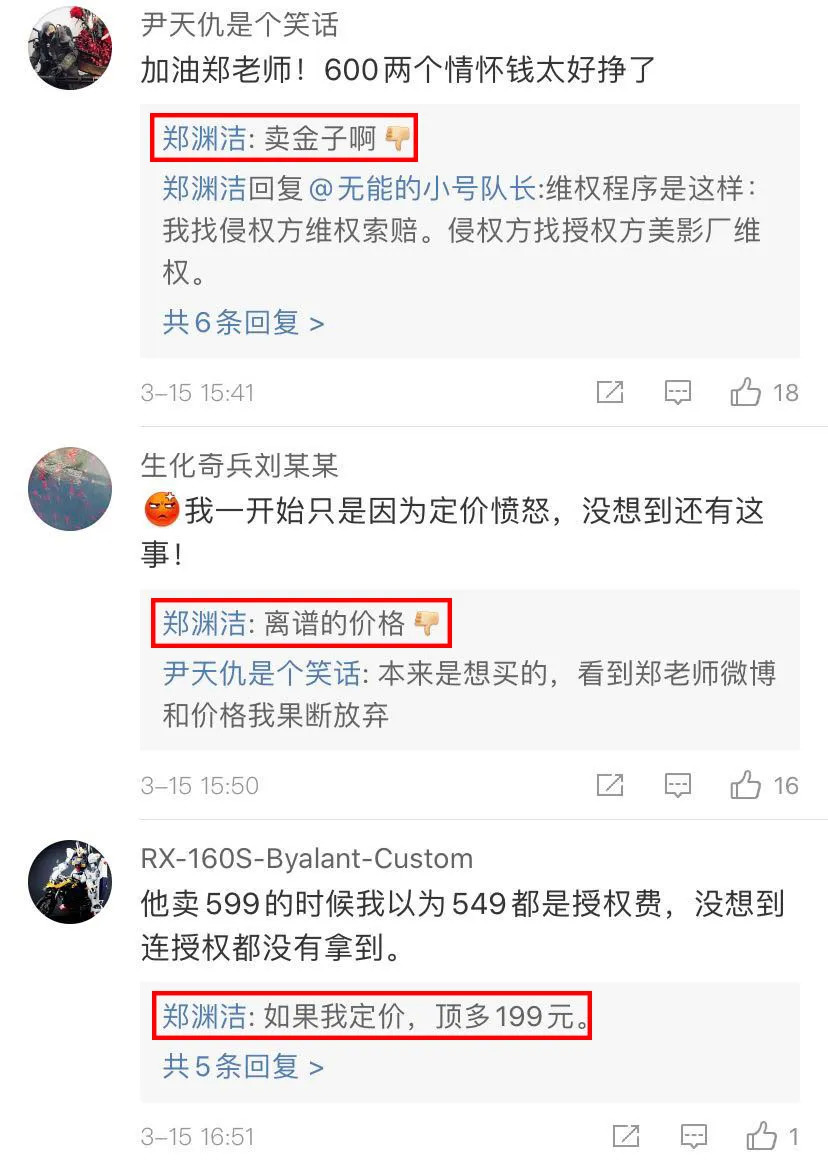 相比起来,更令人在意的是,许多网友围绕这套玩具599元售价的各种吐槽,始终贯穿于整个事件的发展过程中。甚至就连郑渊洁老师自己,都觉得一套玩具卖到这个价格,实在是过于离谱。