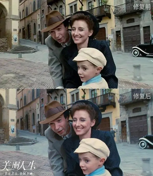 “电影修复”指对年代久远的电影胶片污垢、掉色、抖动、闪烁、噪声、变色、模糊等问题进行处理,还原影像原貌的过程。35mm胶片的分辨率约为6K,但大多数人看到的所谓的“胶片电影”都是十几年前甚至几十年前用数字摄像机翻录的,画质观感自然不高。