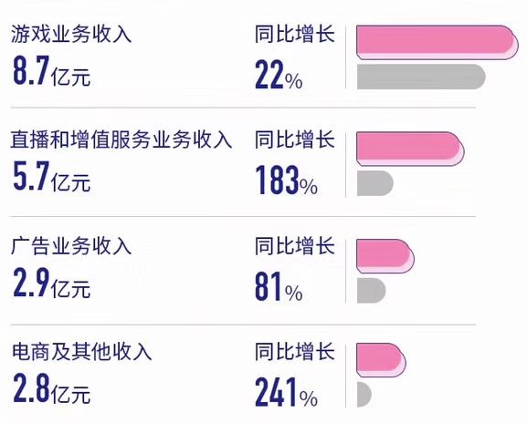 2019年四季度,直播与增值服务收入5.7亿元,同比增长183%,占当季收入的28%。