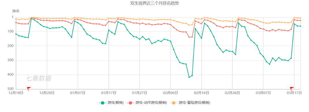 但现在,新手游成为爆款的难度似乎越来越大了,从这几款游戏目前已有的表现来看,它们很难成为B站的下一个《FGO》。像B站投入不少资源力推的《双生视界》,虽然表现也不错,但随着刚开服的热潮过去,近期的下滑趋势明显,不像《FGO》,每次大型活动都能重新激活老玩家,冲进畅销榜前10。
