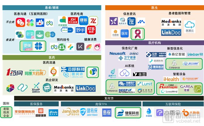互联网/数字医疗行业版图,图片来源:君联资本