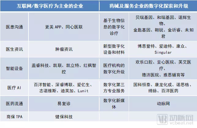 另一方面,经典医疗体系的各相关方,也在不同程度的开展基于各自背景的数字化探索和升级,具体的类型包括: