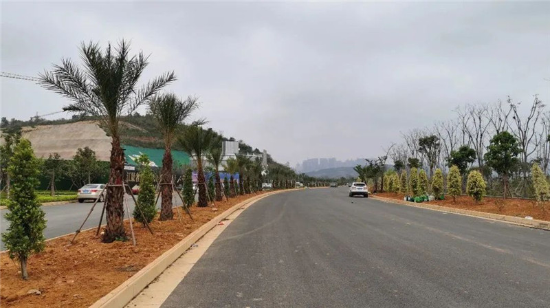 近日,江湾路全线道路铺设已经完成,正在进行绿化施工,全线通车在即。