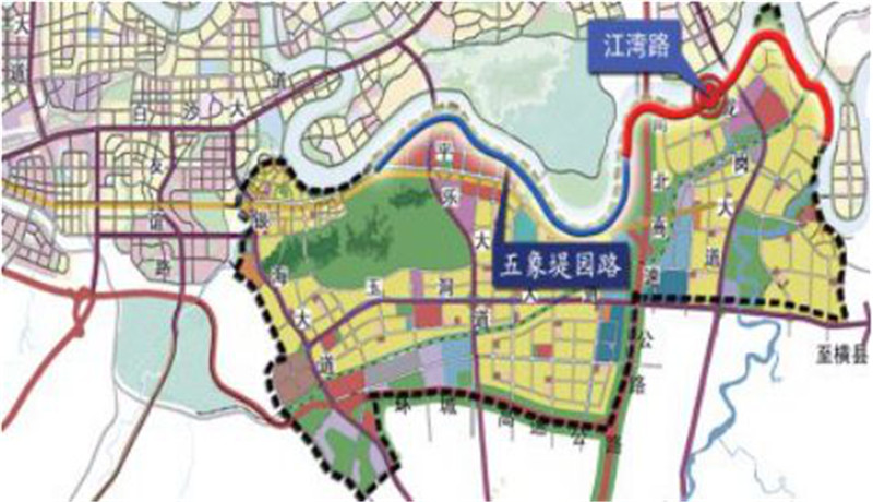 •可经由平云路、马岭路等生活圈干道从龙岗通达全市;•走江湾路上龙岗大道,往北走蓉茉大道是青秀区,往南走是五象新区;•西段接青山大桥直达青秀,大大缩短了连接南宁东向邕江南北的直径。