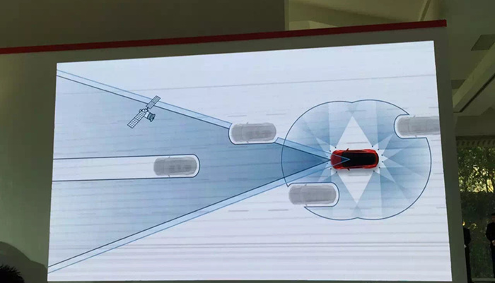 2. Model S配备了三种不同的硬件系统,随时掌握实时路况:远距离雷达(集成到前面牌照安装位置的下面)提供远距离扫描前方的环境;前置摄像头(在后视镜上方)工作时作为车辆的“眼睛”具备图像识别能力,能够识别出交通标志;12个超声波传感器随时监控汽车四周环境。在避免侧面碰撞方面,特斯拉将提供两种警报:一是车道偏离警报,另一个是侧撞预警警报。基于这些系统,Autopilot将实现自动车道保持、自动变更车道和自动泊车三大功能。