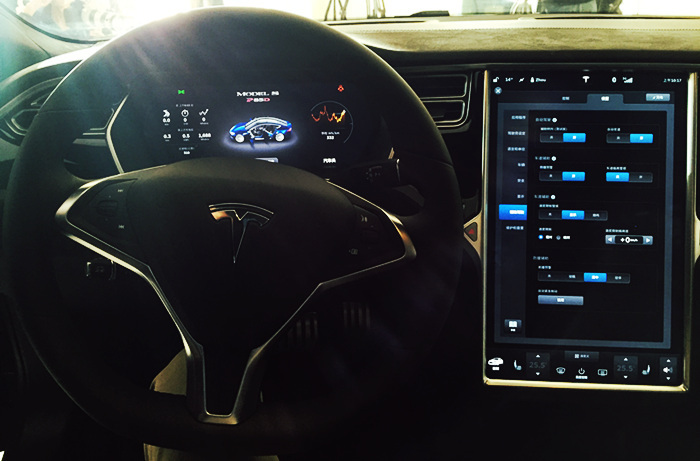 4. 升级7.0版本之后,Model S会使用各种措施,包括转向角度、转向率和速度来确定自动转向系统协助驾驶者在路上进行合适的操作,使驾驶变得更容易。在自动转向系统和交通感知巡航控制系统的控制下,车辆可以在原有车道保持速度。必须强调的是,驾驶者在启用自动转向系统时,手不能离开方向盘。在自动变道系统的辅助下,变更车道变得十分简单。先检查变道是否安全,然后开启转向灯。车道变更完成后,再松开转向灯。