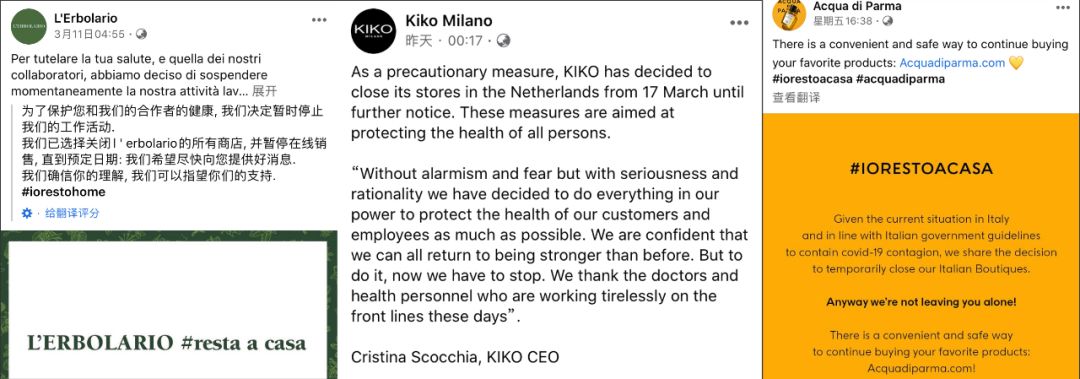 △ 欧洲美妆品牌纷纷发声,呼吁消费者团结起来共同抗疫