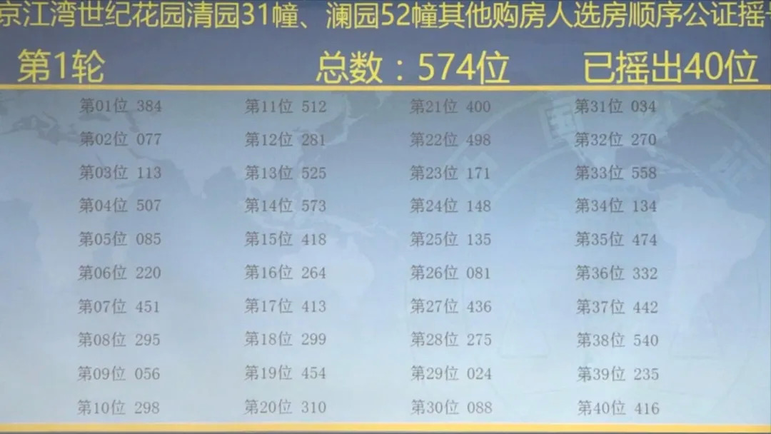 3月24日16时30分,仁恒江湾世纪公证摇号结果出炉,本次共计574组普通购房者(已剔除5组无效数据),132套房源(含40套人才房),中签率23%!参与摇号房源为52、31#,共计132套房源,均价42630-45994元/㎡,建筑面积为179㎡,预计本周开盘。