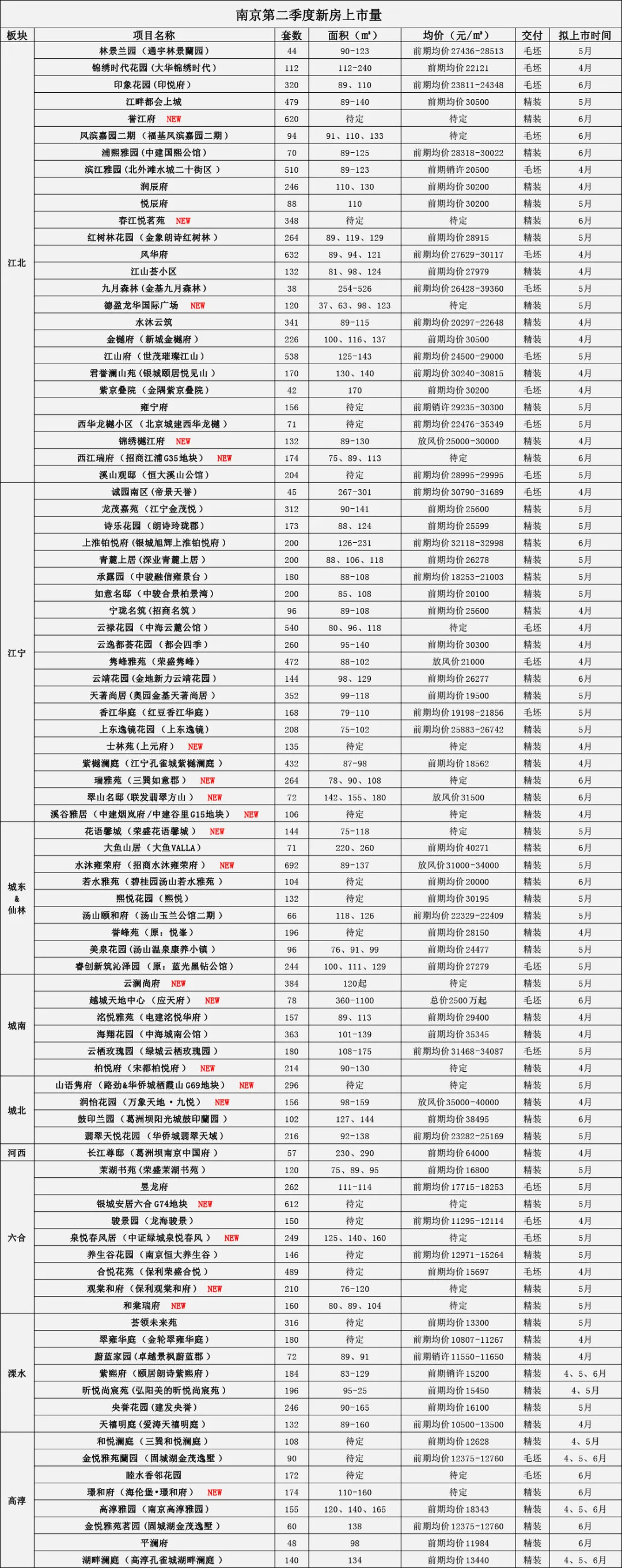 同是供货大户的江宁板块,二季度共有20盘计划入市,其中4盘为纯新盘。