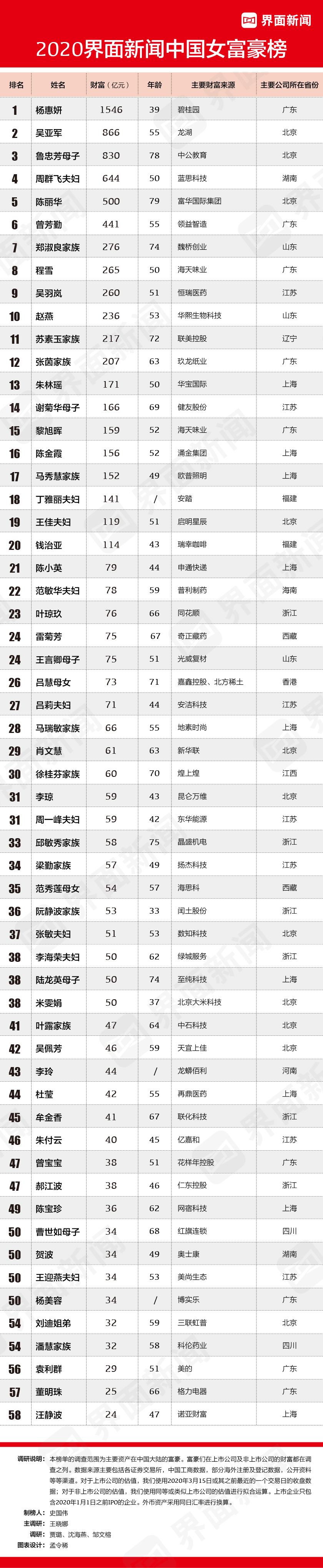 - 2020界面新闻中国女富豪榜