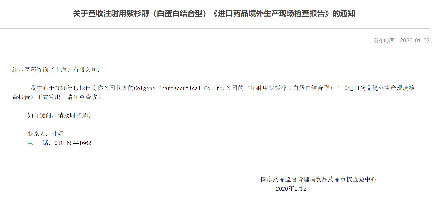 而国家药品监督管理局食品药品审核查验中心网站则显示,此次检查报告在今年1月2日就已发出给新基。