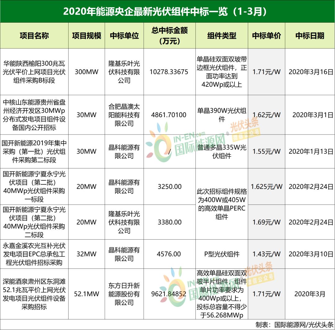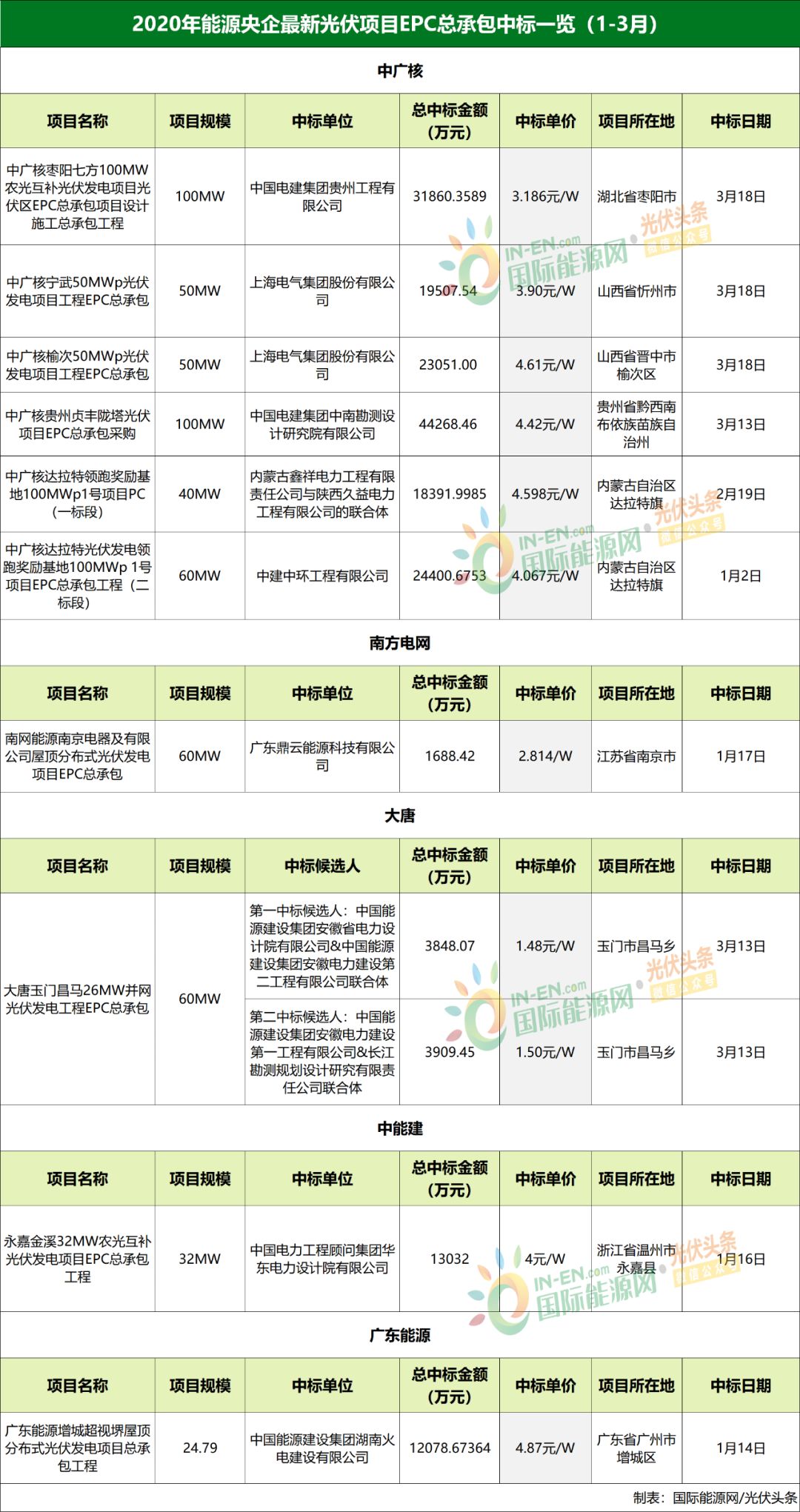 中标均价3.585元/W!首季度能源央企EPC中标一览!