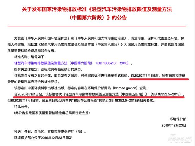 ▲按照原计划,国六标准将于2020年7月1日起实施