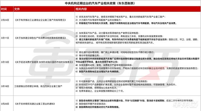 从内容看,五份政策/文件的关注重点仍然是在企业的复工复产以及如何刺激汽车消费上面,对于汽车行业来说,这也是当前最棘手最亟需解决的问题。