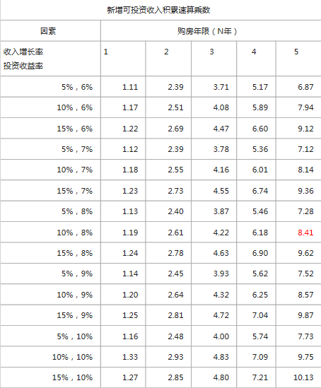◆ 新增可投资收入积累=初始年收入×(1-消费比例)×速算乘数