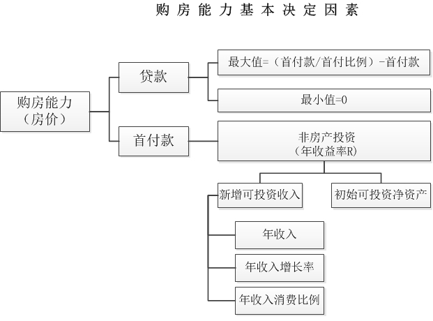 买房的钱包括两个部分:首付款和贷款。当然,如果不贷款,就相当于贷款为零。假设现在决定在N年后买房,那么我们在N年之后购房能力主要由以下因素决定: