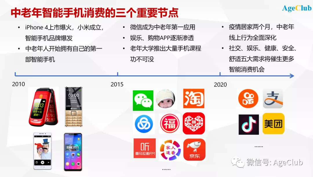 1.中老年群体普及智能手机十年历程,有三个重要节点值得特别重视