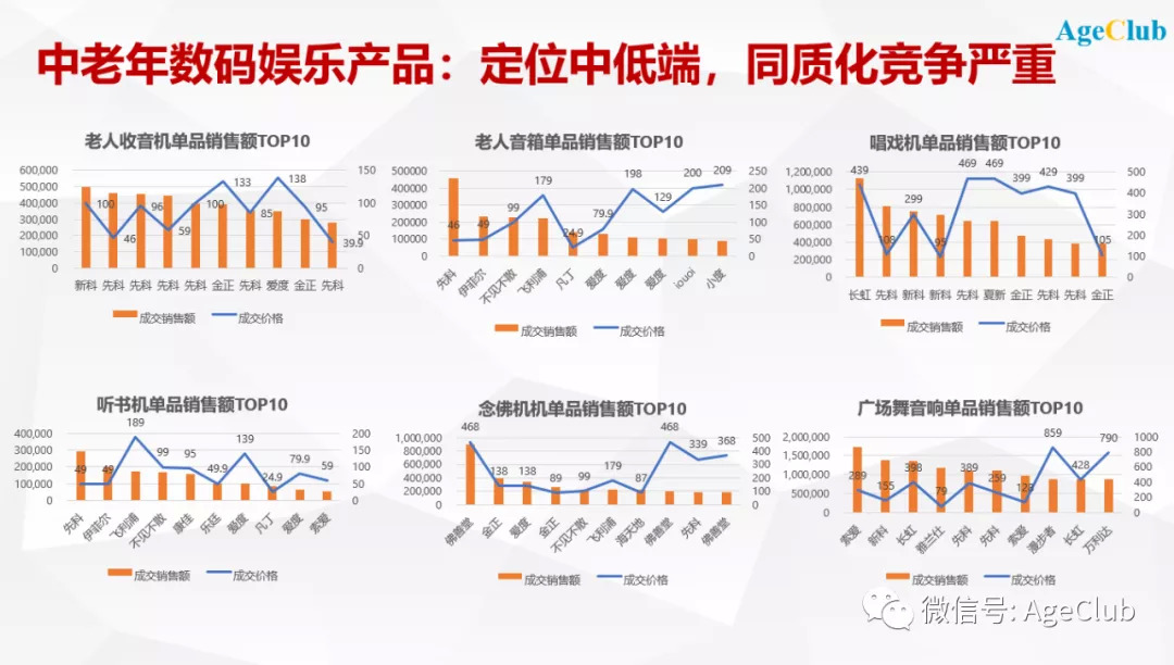 2020年1月AgeClub对主流电商平台的中老年智能数码娱乐产品数据监测发现,线上产品以老人收音机、老人音箱、唱戏机、听书机、念佛机为主;