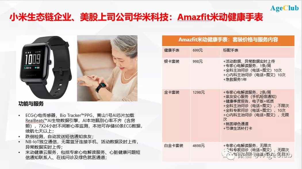 值得重视的是,华米科技在2019年专门推出面向中老年群体的Amazfit米动健康手表/手环和完整的配套服务包;
