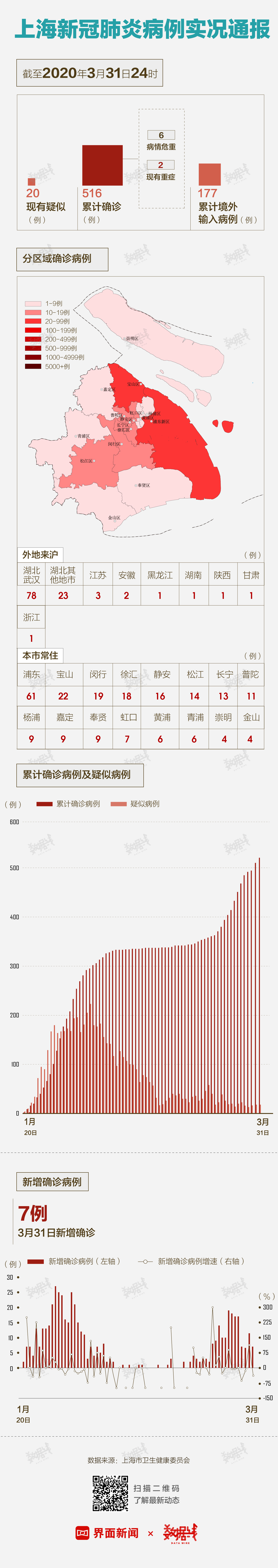 全国新增确诊和疑似病例双双下降。3月31日,全国新增确诊病例36例,其中境外输入病例35例,本土病例1例,来自广东;全国新增疑似病例26例,增幅从前一日的158.82%降至-40.91%,均为境外输入病例。